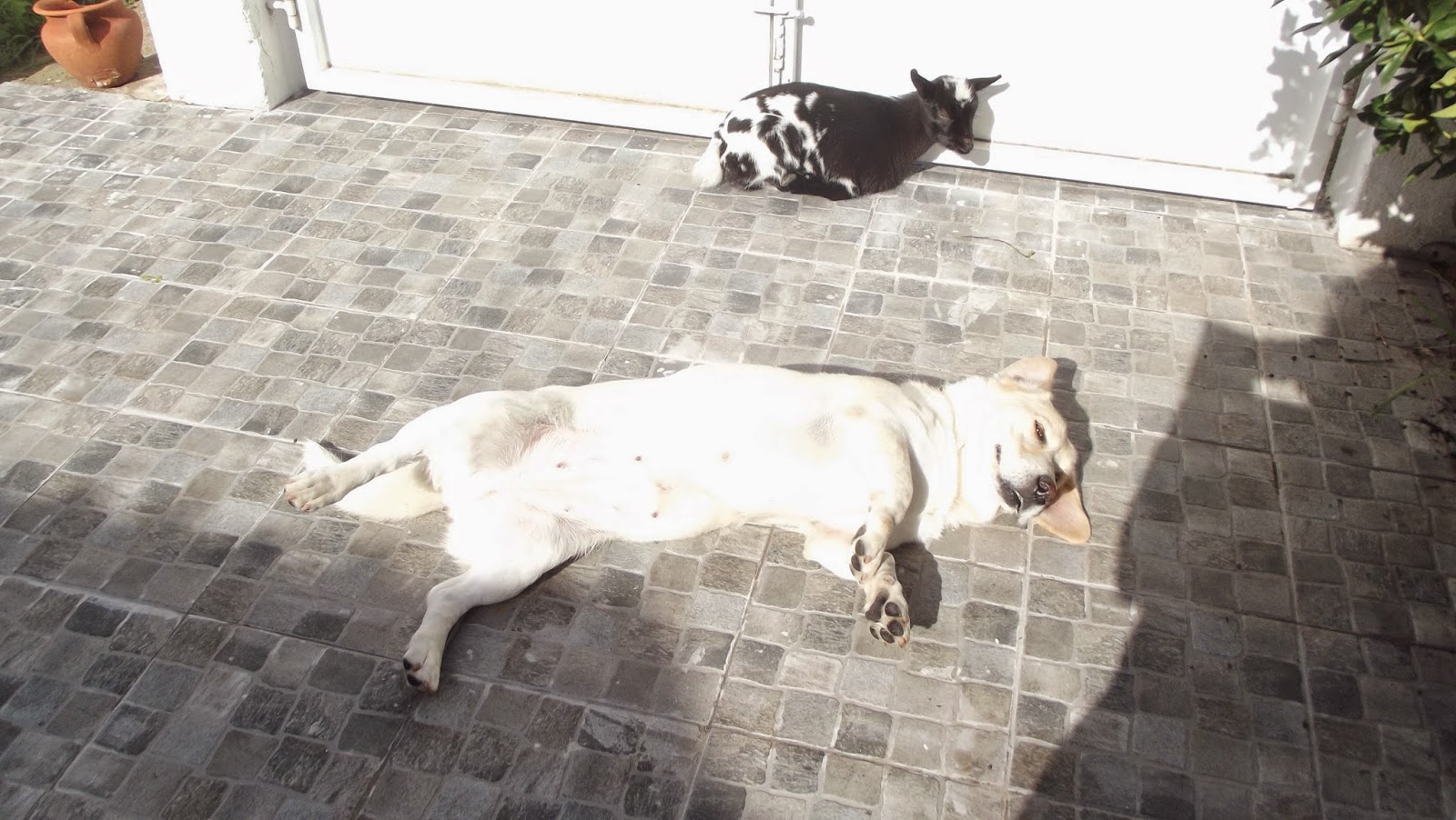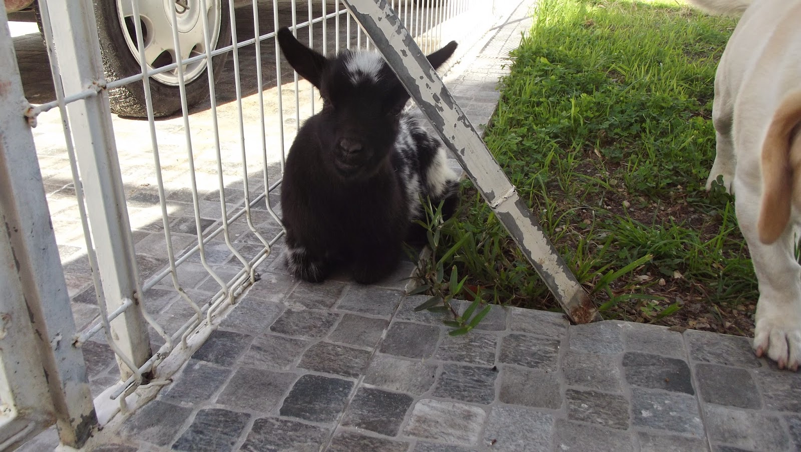 A Francisca apesar de ser uma cabra ela julga se uma cadela e dorme e brinca com os cães e gatos.